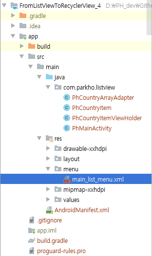 1. 하단 그림과 같이 res 폴더 안에 'menu' 라는 이름으로 폴더를 추가