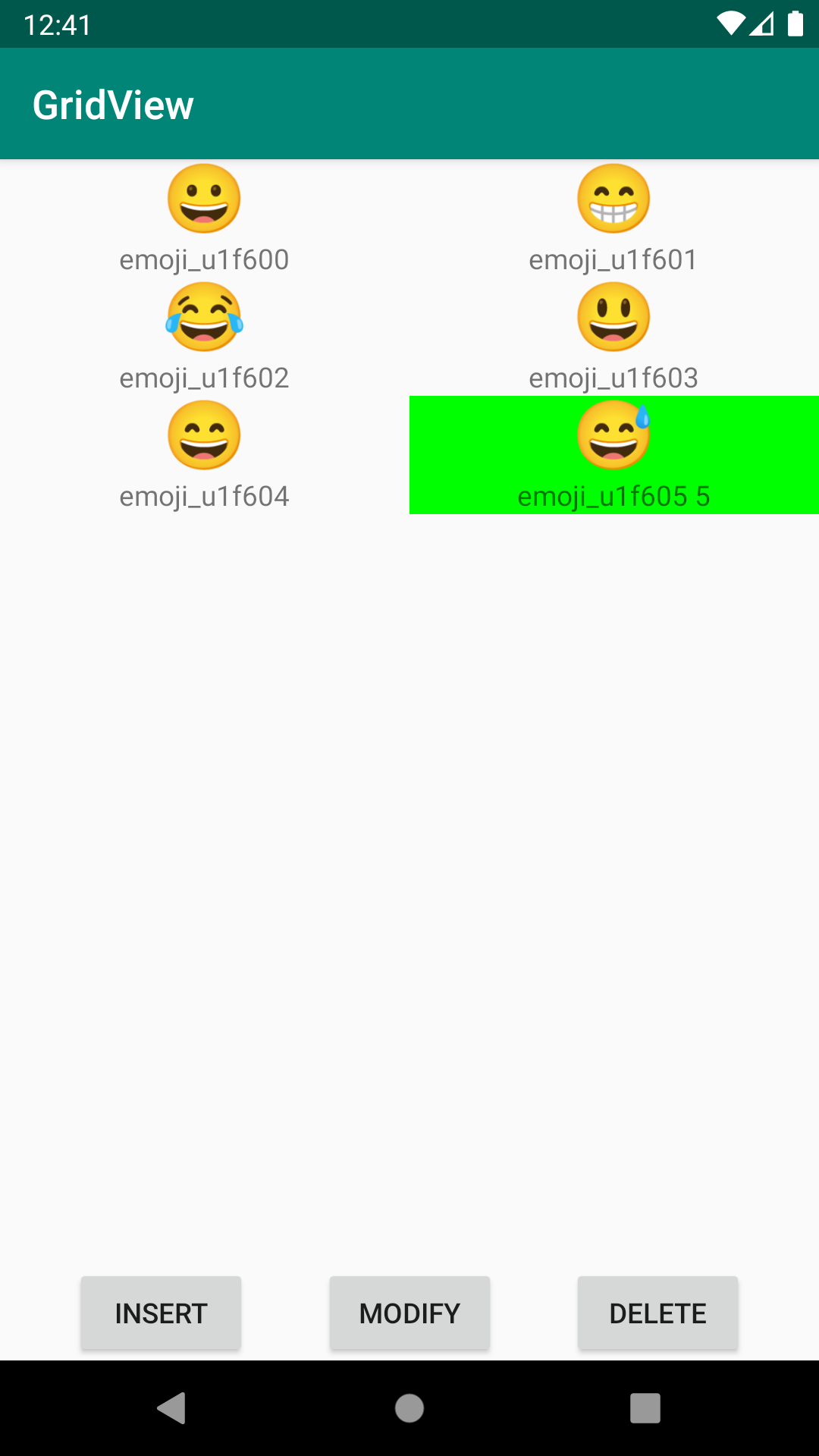 삽입, 수정과 마찬가지로 수정 후 꼭 adpater 의 "notifyDataSetChanged" 를 호출해야 grid view 에 반영된다.