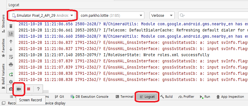 Logcat 의 'Screen recorder' 이용하기