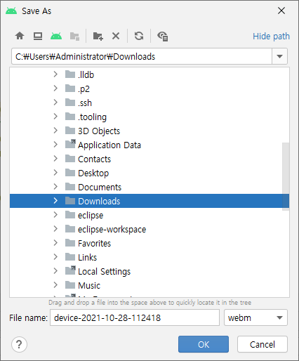 실제 단말에서는 'mp4' 포맷으로 저장되고, 에뮬레이터는 'webm' 포맷으로 저장된다.