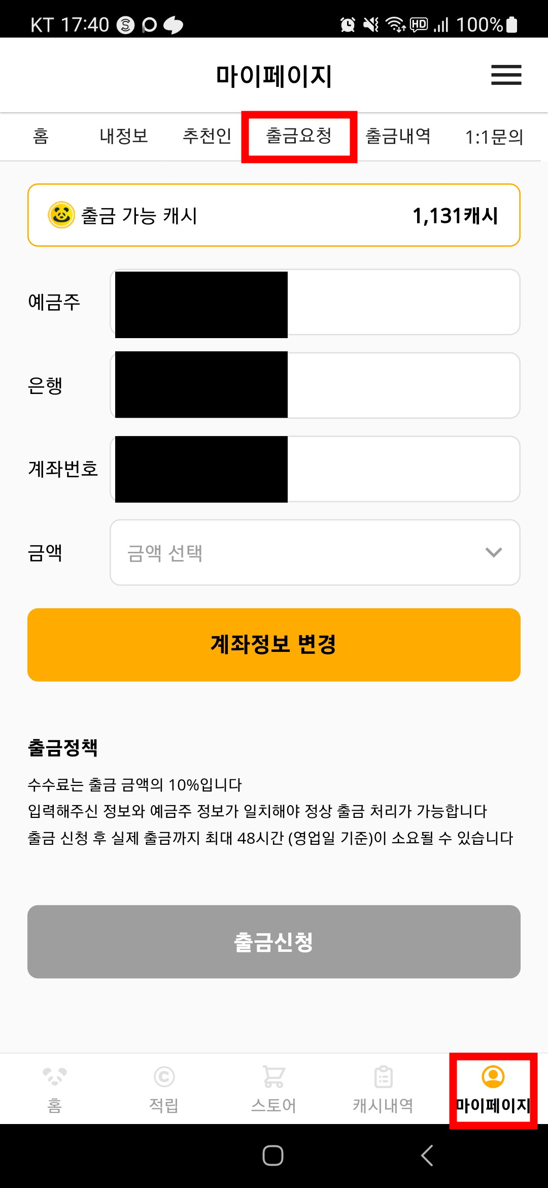 (현금화 외에도 스토어에서 물품이나 상품권 교환도 가능하다.)