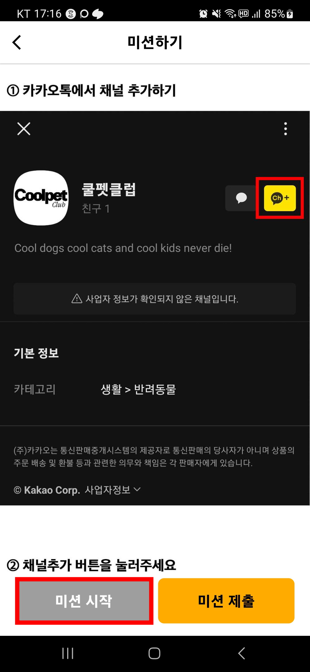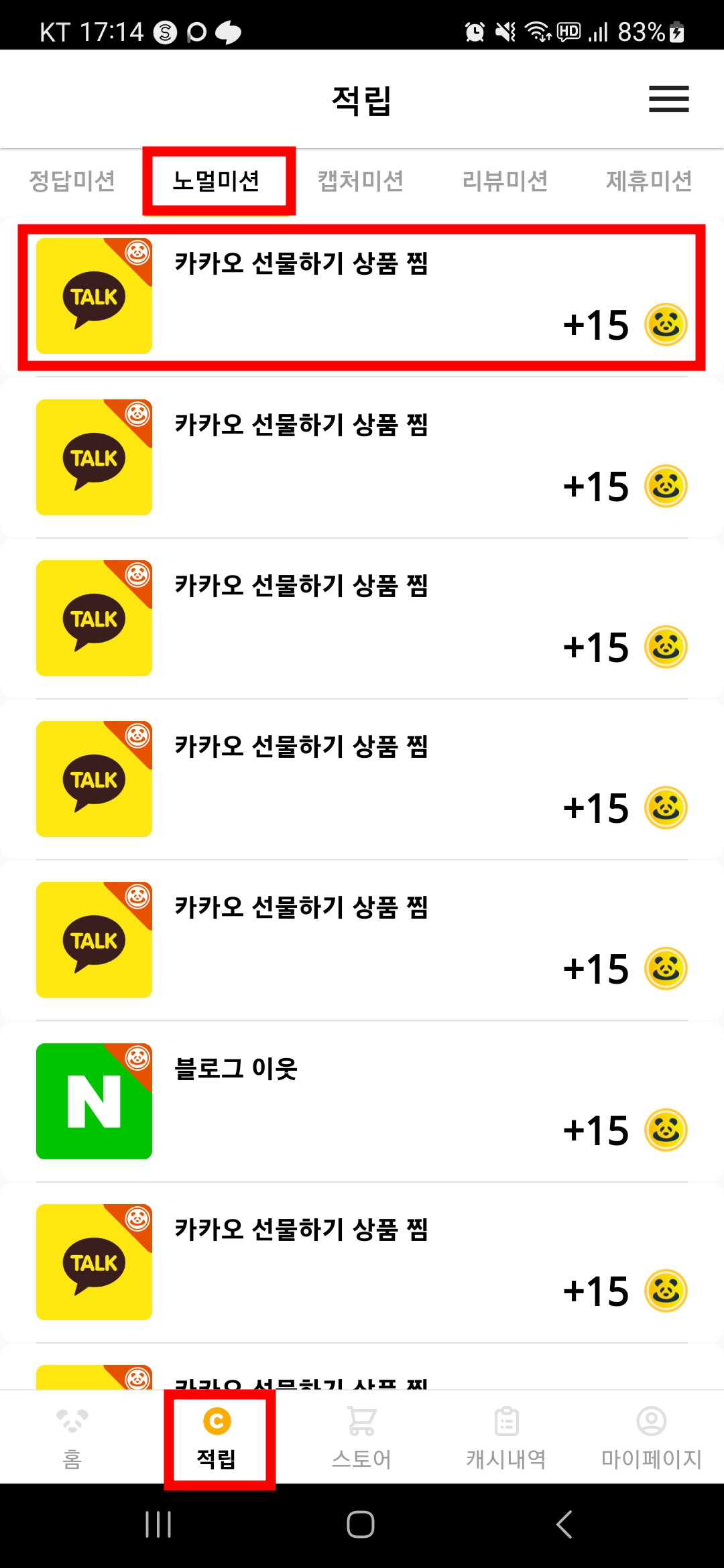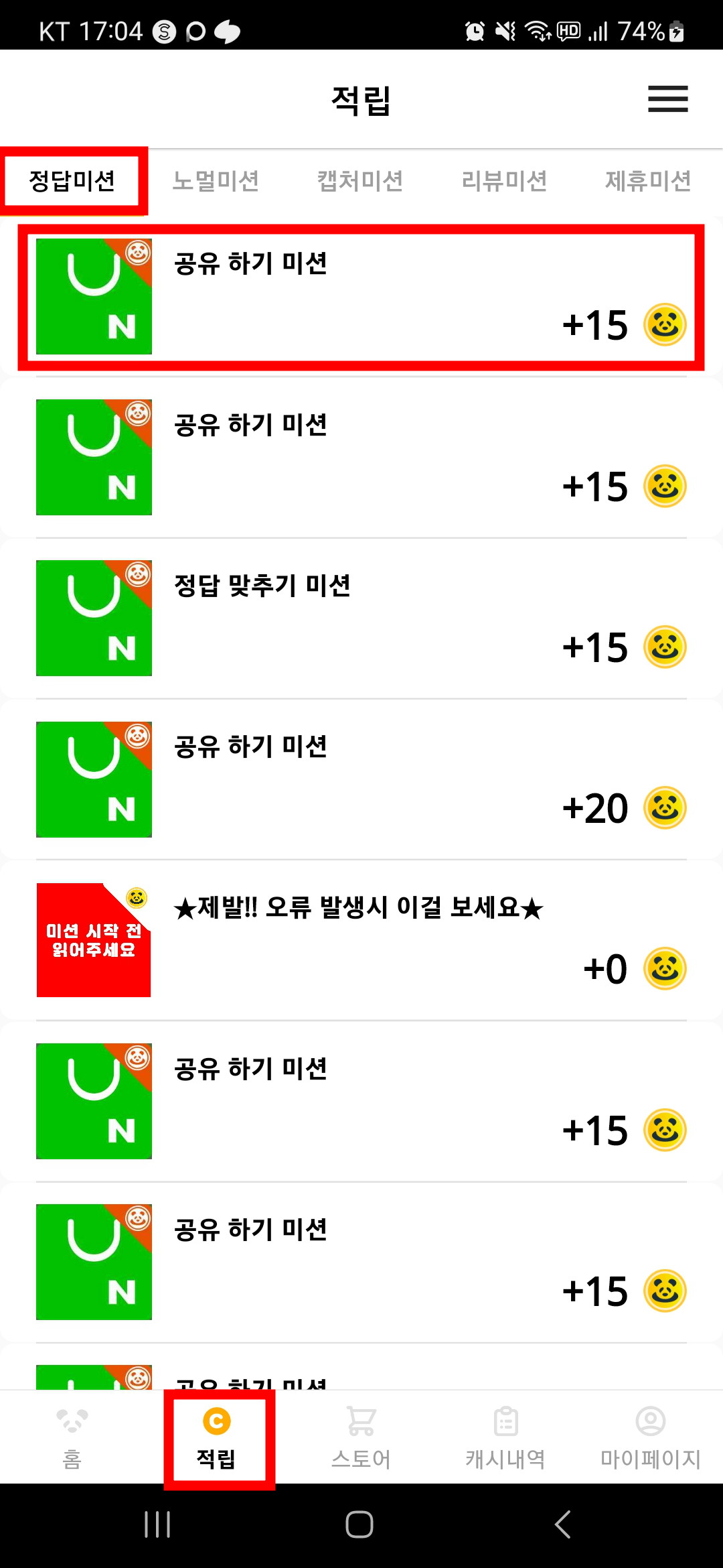 정답미션과 같이 원하는 항목을 클릭하여 미션 방법을 그대로 따라 하면 된다.