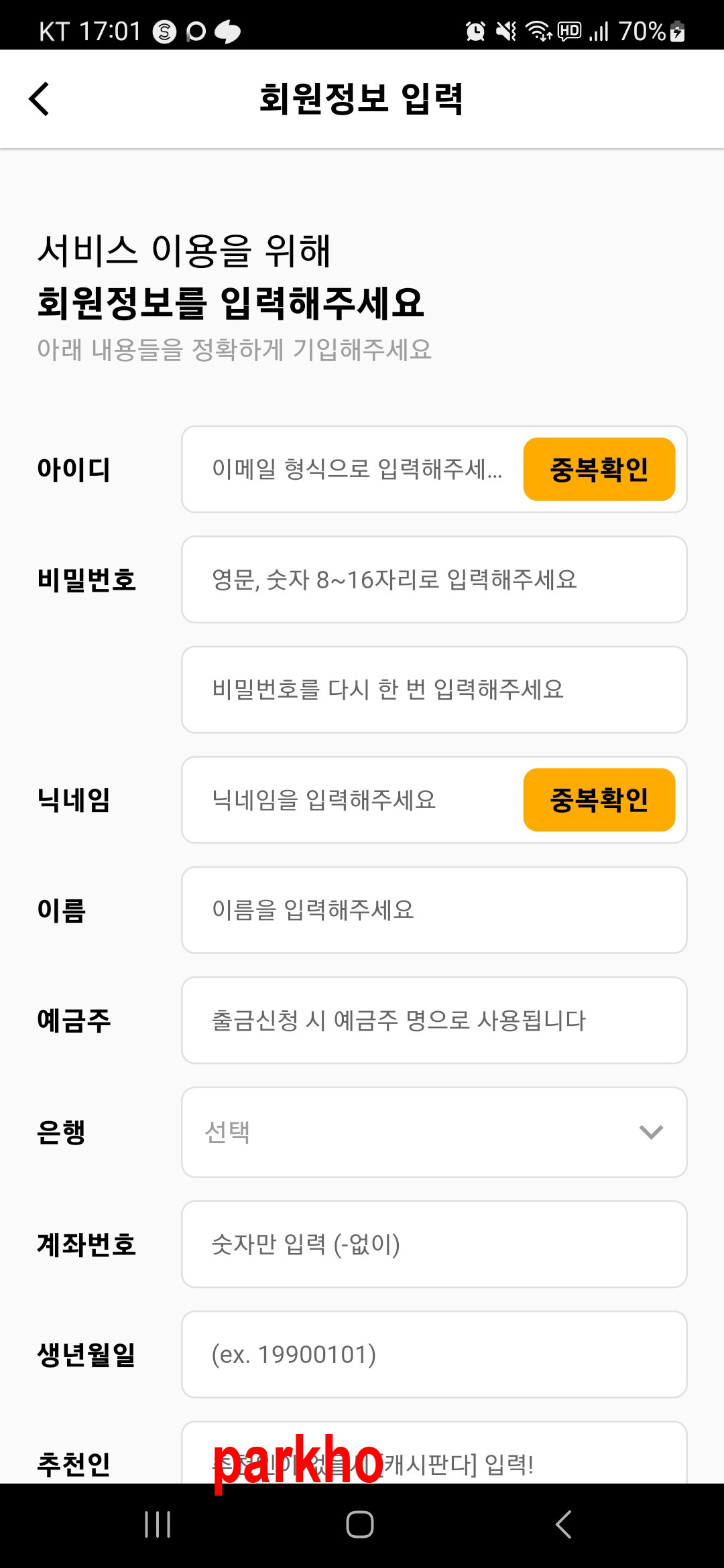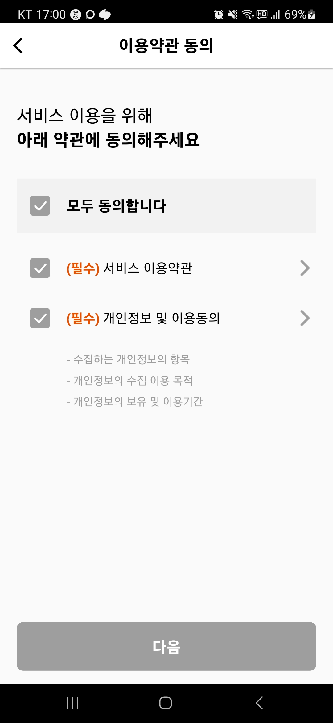 앱을 다운로드 후 하단과 같이 회원가입을 하자.