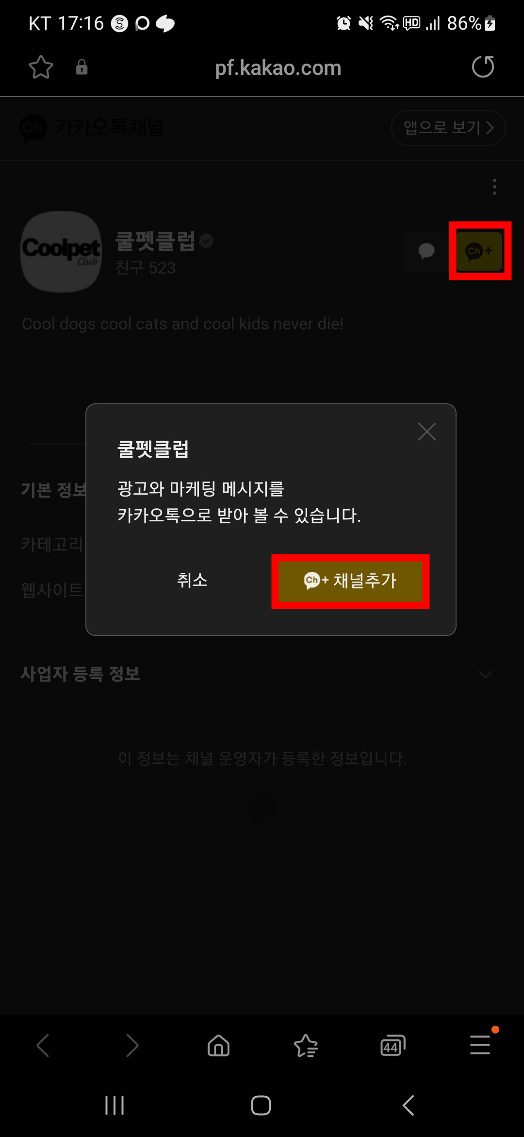 - 미션과 같이 채널을 추가하면 "채널 추가 완료" 메시지가 나오는데 해당 화면을 캡처한다.