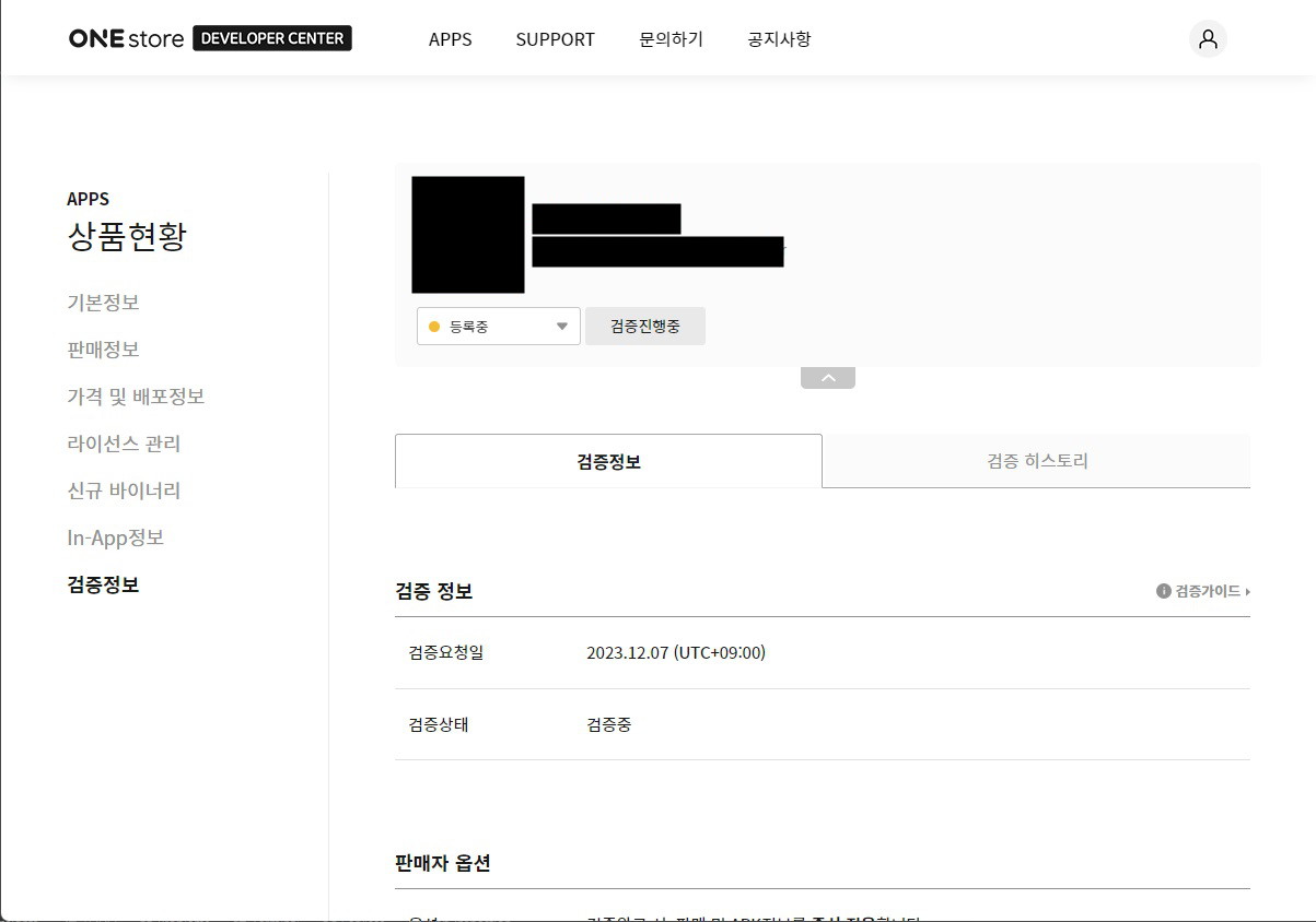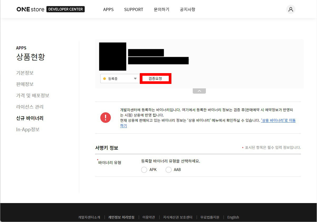 등록된 앱을 검증요청 하면 심사를 거쳐 원스토어에 출시된다.