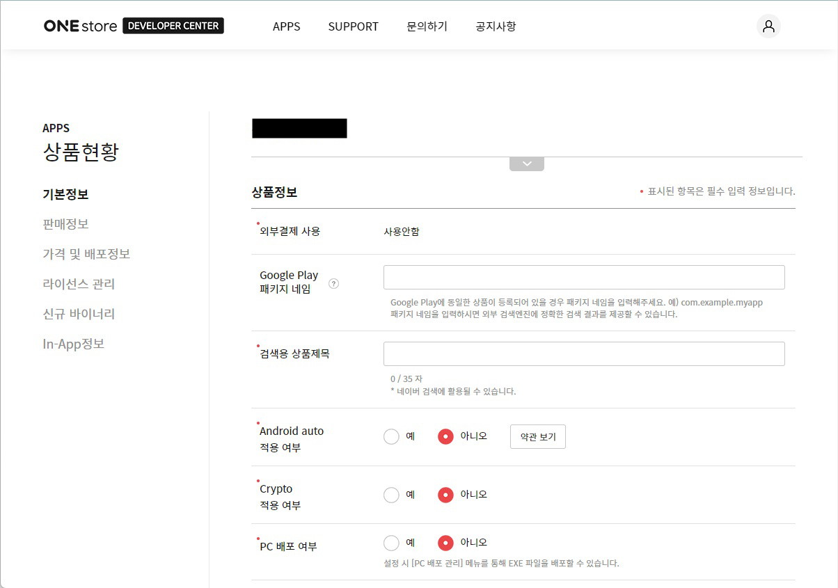 - 패키지 네임: 등록할 앱의 package name 을 입력한다.