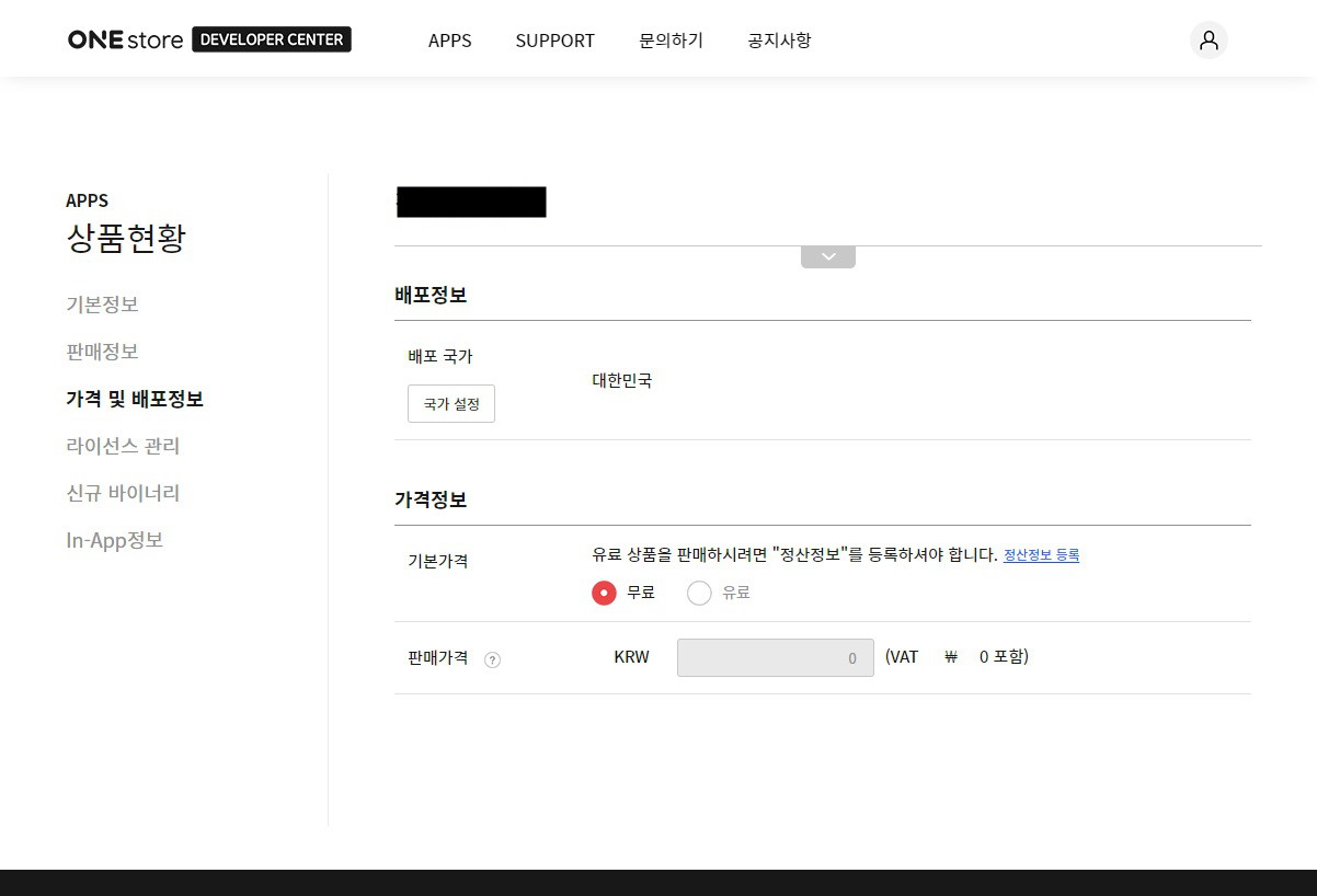 배포 국가 및 유료/무료 여부를 설정하자.
