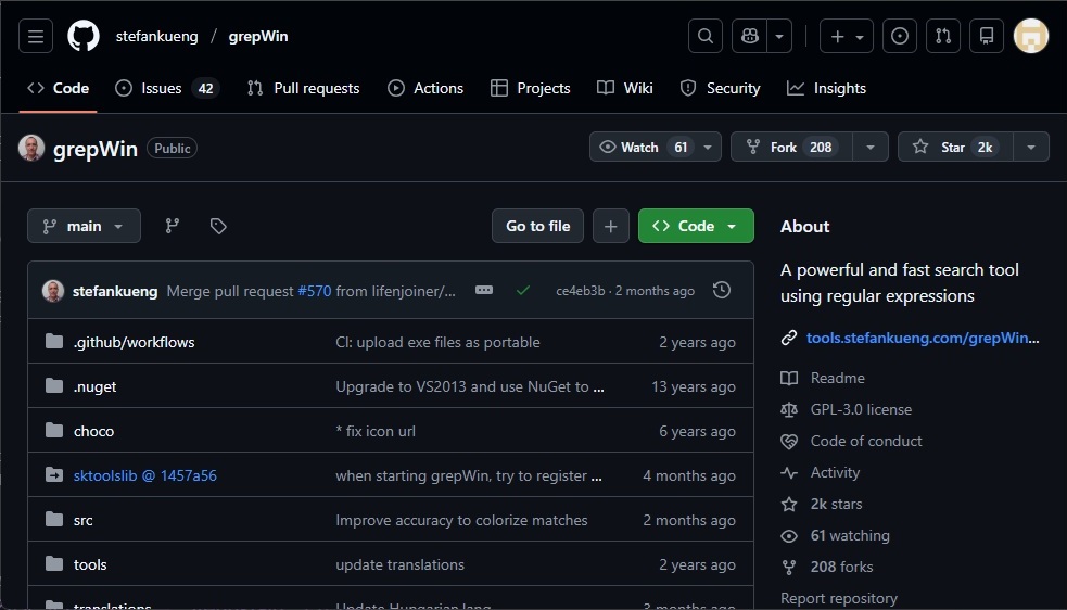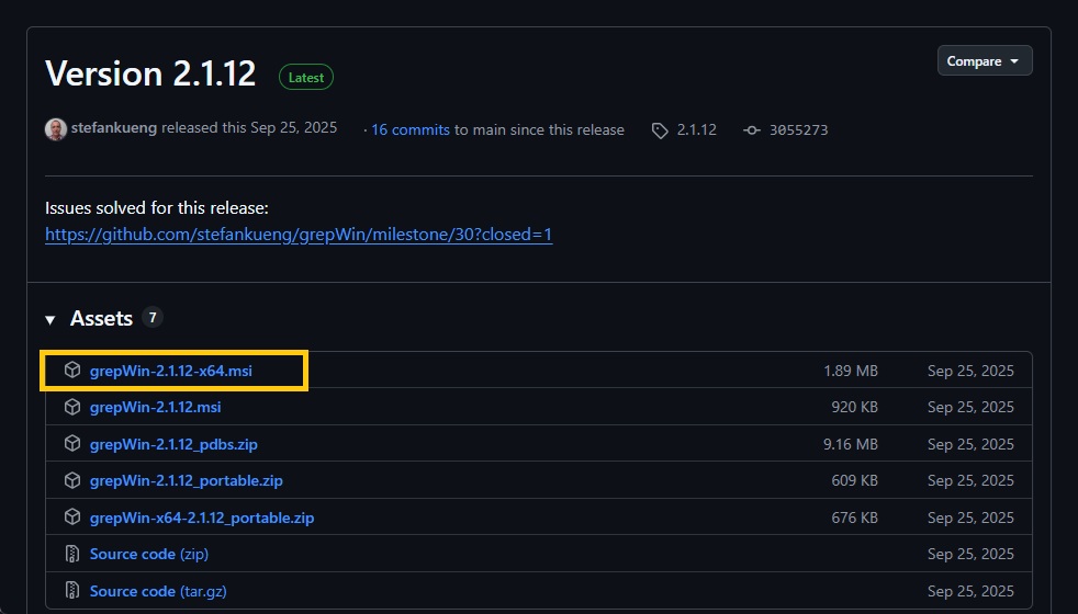 하단 링크를 통해 grepWin 을 다운로드할 수 있다.