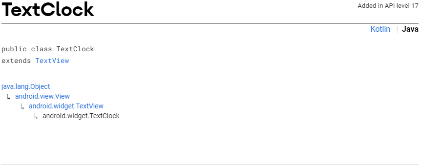TextClock 은 TextView 를 상속받고 있는 간단한 디지털 시계이다.