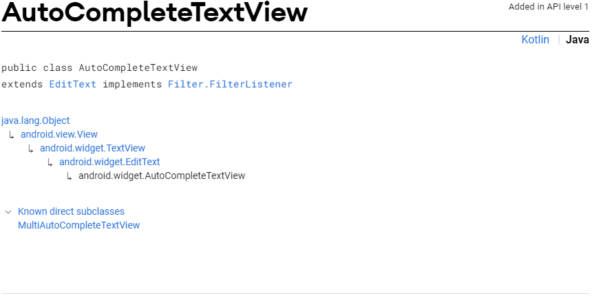◼ AutoCompleteTextView code in JAVA