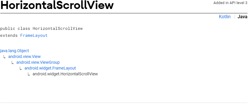 ScrollView 와 HorizontalScrollView 는 기본적으로 동일한 속성을 가지고 있고 scroll 방향에 따라 하단과 같이 나뉜다.