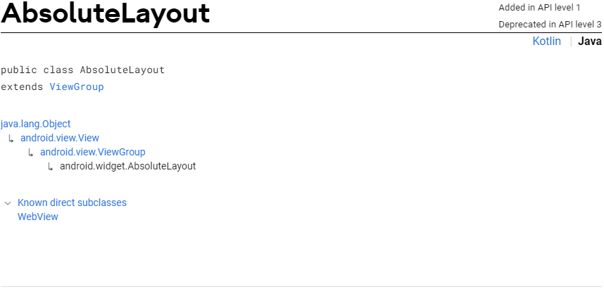 참고로 AbsoluteLayout 은 deprecated (쓰지 마라) 된 상태이다.