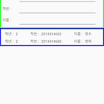 이번 포스팅에서는 SQLite 를 사용하기 위한 UI 구성에 대해 설명하려 한다. DB의 기본요소인 CRUD 에 맞춰 아래와 같이 구성했다. Create (INSERT) 사용자 입력값을 DB 에 삽입한다. ◼ 사용자 입력값 : 초록 사각형의 학년, 학번, 이름 ◼ DB 삽입 : 붉은 사각형의 "INSERT" button click Read (SELECT) DB 전체를 query 하여 화면에 출력한다. ◼ 파란 사각형에 list 형식으로 출력한다. ◼ List 형식으로 출력하기 위해 RecyclerView 를 사용했다. Update (UPDATE) 선택한 column 을 사용자 입력값으로 DB 에 갱신한다. ◼ 선택한 column : 파란 사각형의 item click ◼ 사용자 입력값 : 초록 사각형의 학..