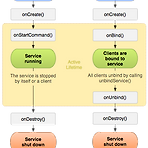 Service? 사용자 인터페이스(GUI) 없이 background 에서 동작하는 component (Android 4대 component : Activity, Service, Broadcast receiver, Contents provider) Background 때문에 혼동할 수 있지만 사실 service 는 main thread 에서 동작한다!! 왜? 1. Activity 가 종료되어 있는 상태에서도 동작한다. : Activity 에서 thread 사용 시 별도의 종료가 없다면 activity 가 종료되어도 thread 는 계속 동작한다. 하지만, activity 가 종료되면 activity 의 생명주기에 맞춰 thread 도 종료 시켜주는게 바람직하다. 즉, 앱이 종료되어도 thread 가 동작해..